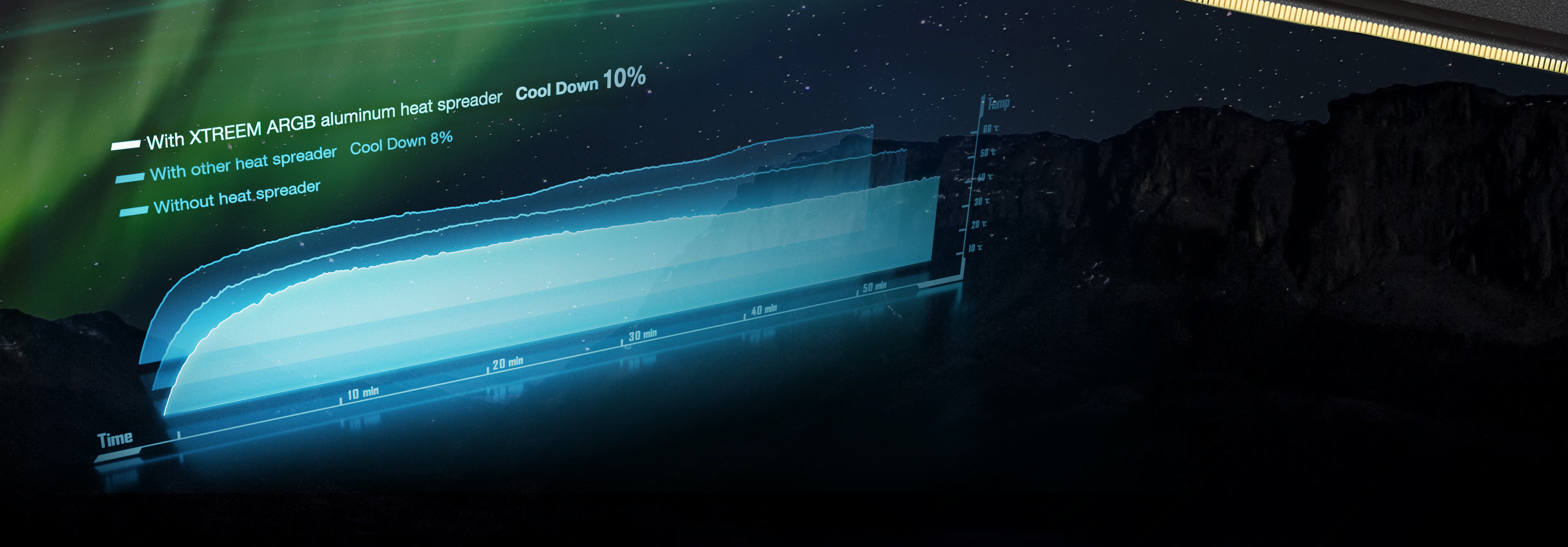 T-FORCE XTREEM ARGB DDR5, yarı saydam çok katmanlı optik tasarım sayesinde aurora benzeri yumuşak ışık hareketlerini mükemmel şekilde yansıtan yenilikçi iki parçalı ışık borusunu benimseyerek oyunculara benzersiz, sürükleyici bir aurora hissiyatı sunuyor.