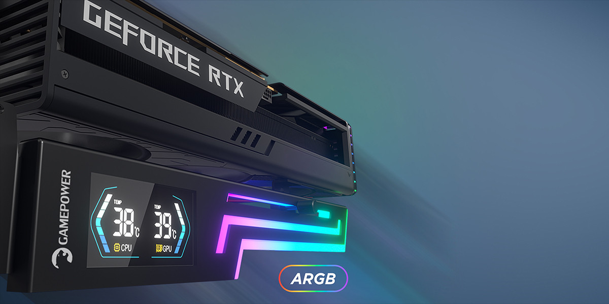 Gamepower Heatsync ARGB LCD Ekran Kartı Tutucu Siyah
