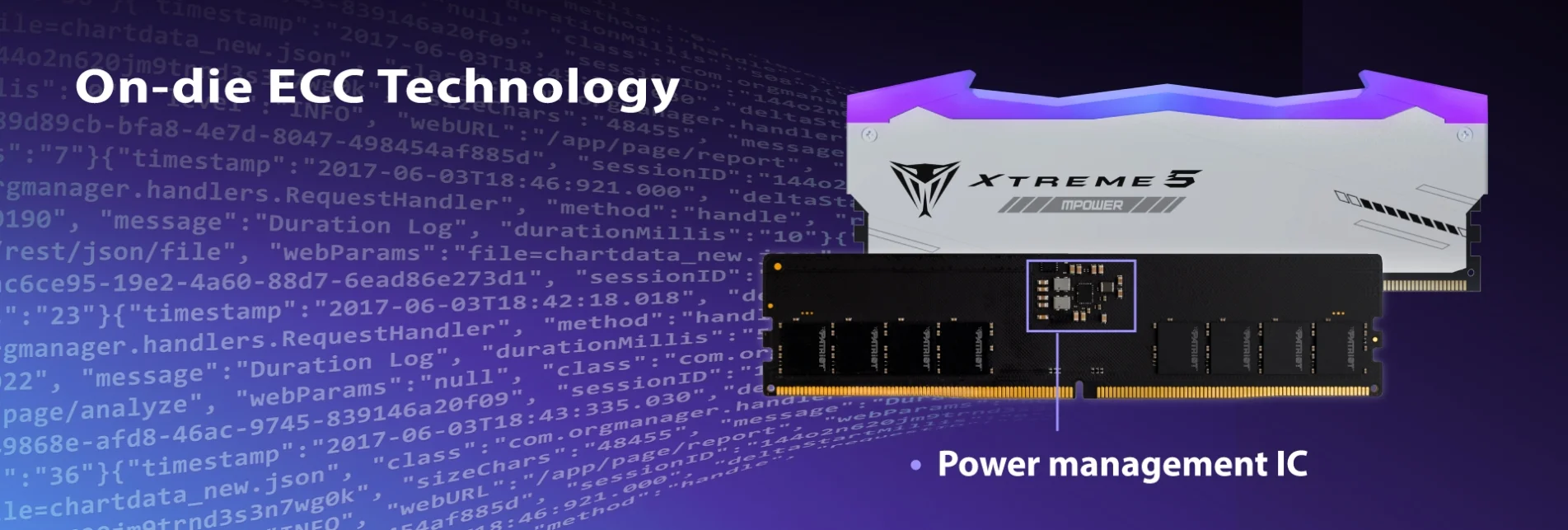 Viper Xtreme 5 RGB DDR5 MPOWER Serisi, On-Die ECC teknolojisinden yararlanarak kararlılığı artırır, tek bitli hataların düzeltilmesi ve çok bitli hataların tespiti yoluyla veri bütünlüğünü ve sistem güvenilirliğini korur. Entegre yüksek kaliteli PMIC ile zenginleştirilen bu seri, daha düşük voltajla ve azaltılmış ısı üretimiyle daha yüksek hızda çalışmayı mümkün kılarak sistem kararlılığı sağlar ve en zorlu ortamlarda bile en yüksek performansı garanti eder.