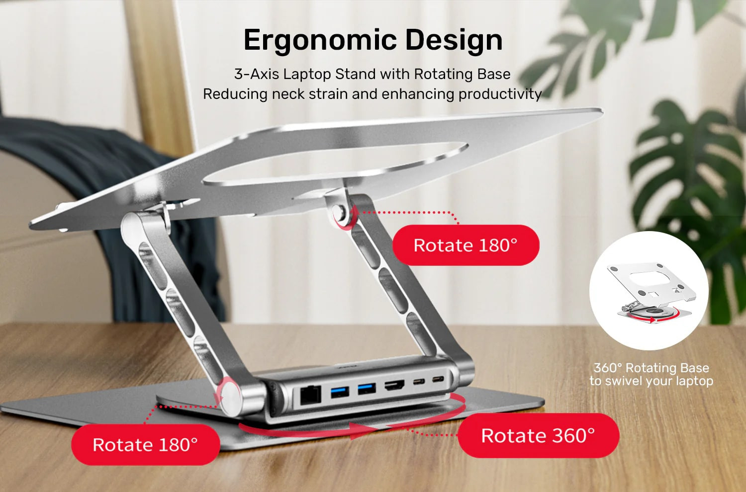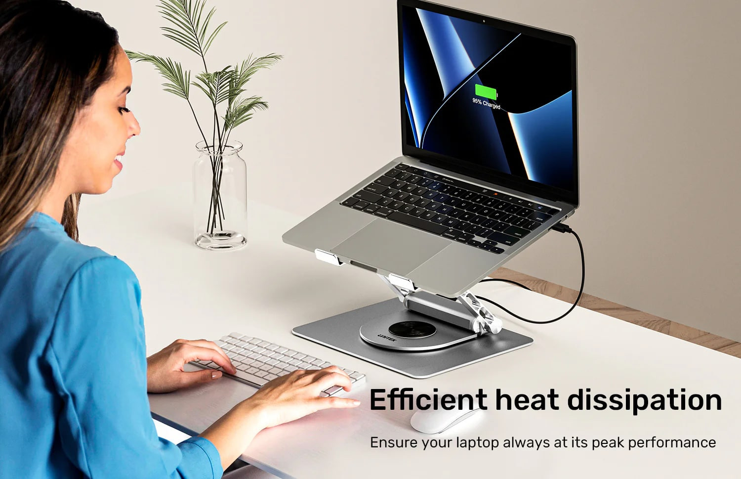 Boyun gerginliğini azaltan ve üretkenliği artıran döner tabanlı 3 Eksenli Dizüstü bilgisayar standı.