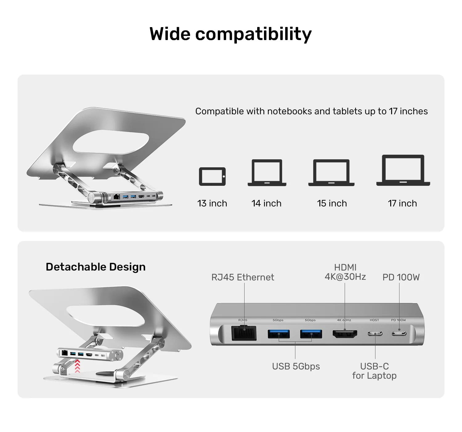 Unitek 360D 15.6" Metal Notebook Standı (Çıkarılabilir 5 in 1 USB-C Hub Dahil) (D1109B01) Genel Özellikler