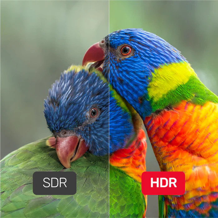 HDR (Yüksek Dinamik Aralık) desteği sayesinde SDR’ye kıyasla çok daha canlı renkler, daha derin siyahlar ve parlak beyazlar sunar.